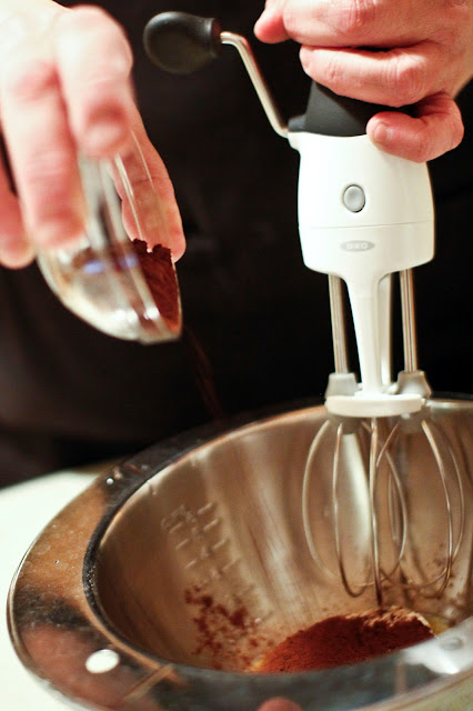 Of course, after looking at the Lebovitz recipe, I couldn't leave well enough alone. I figured if a sweet goat cheese souffle was good, wouldn't a chocolate goat cheese souffle be even better? I had to find out. So I picked up some Cypress Grove Chevre, creamy and mild, and dipped into my stock of Valhrona Cocoa Powder (if you're making a dessert, you want the best ingredients you can get.) I was on a mission from God as the Blues Brothers used to say. Turns out it was easier than I thought it would be.