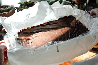 Vegan Chocolate Truffle Cake, had been tweeted by my friend The Tomato Tart. She'd gotten the recipe from Ashley The Dairy Free Cook. The recipe was one of the easiest things I'd seen in awhile (I liked that,) I already had all of the ingredients, (I liked that even better,) plus it gave me a chance to use my new OXO digital food scale. "Cooking" time was 15 minutes and the dessert not only can be made ahead,  it needs to be made ahead. At least 6 hours in the fridge (or over night) are needed to set it properly.  Truly a carefree dish. Plus it serves about 8 to 10 people since all one needs is a small piece to satisfy. I made a couple of modifications from the original recipe and I think this cake is one of those desserts that's very pliable. I other words, it easily adapts to whatever one can imagine, always a good thing.