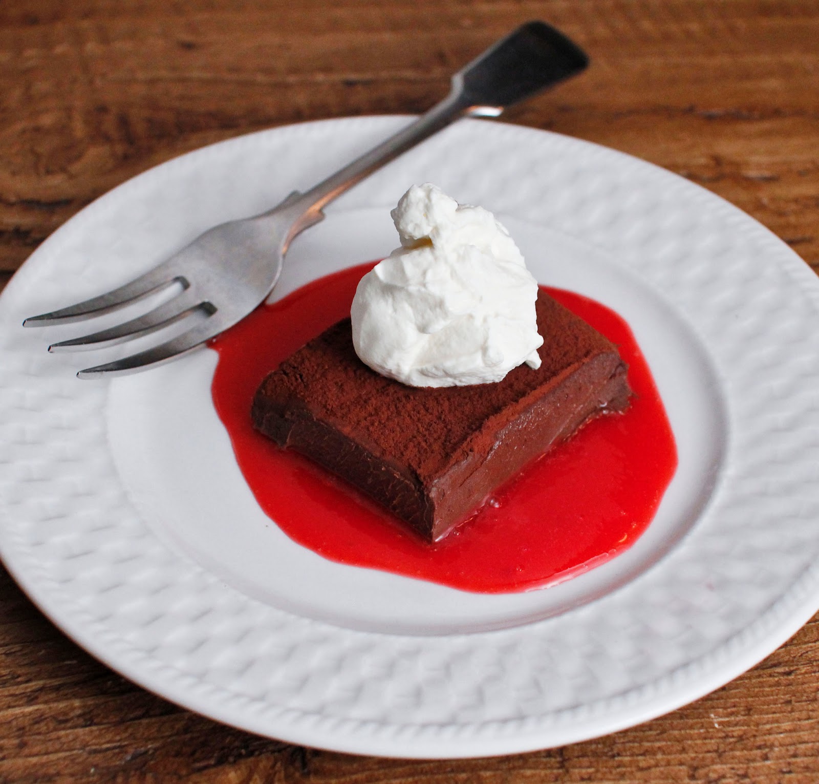 Vegan Chocolate Truffle Cake, had been tweeted by my friend The Tomato Tart. She'd gotten the recipe from Ashley The Dairy Free Cook. The recipe was one of the easiest things I'd seen in awhile (I liked that,) I already had all of the ingredients, (I liked that even better,) plus it gave me a chance to use my new OXO digital food scale. "Cooking" time was 15 minutes and the dessert not only can be made ahead, it needs to be made ahead. At least 6 hours in the fridge (or over night) are needed to set it properly. Truly a carefree dish. Plus it serves about 8 to 10 people since all one needs is a small piece to satisfy. I made a couple of modifications from the original recipe and I think this cake is one of those desserts that's very pliable. I other words, it easily adapts to whatever one can imagine, always a good thing.