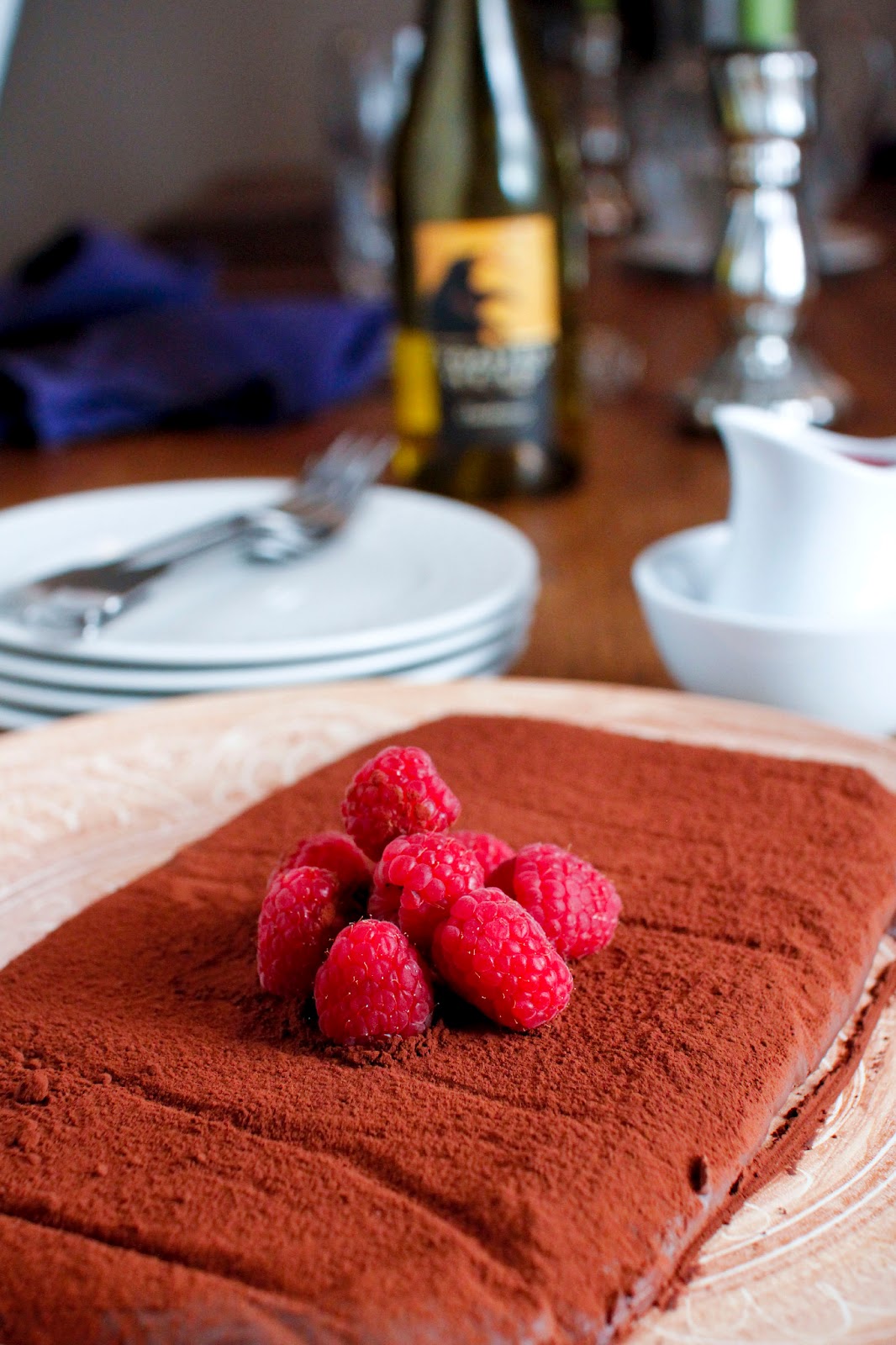 Dust the cake all over with unsweetened cocoa.