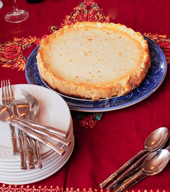 Then a couple of years ago I started experimenting with cheesecake making. It wasn't as difficult as it seemed. One one occasion I actually made my own cheese for cheesecake. I started trying to make different sorts of cheesecakes. I made a Sicilian Cheesecake, an Indian cheesecake, and finally last week I tried my friend Sanjana's Lemon and Saffron Cheesecake only I made mine with mango.